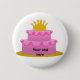 This pretty pink design has a two-layer cake with pink frosting and icing. On top is a gold crown.