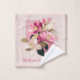 This modern floral illustration features blooming camellia flowers in shades of pink, magenta, and white with golden line accents and geometric frame layers. Perfect for personalized gifts, this elegant design is ideal for home decor, wall art, pillows, and phone cases. Customizable elements available for name or message.