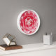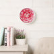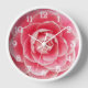 Brighten up a room with this stylish wall clock with white numerals and features the photo image of a big, pink Camellia bloom. A lovely, floral design! Use to decorate a living room, dining room, kitchen, bedroom, or any other room. Select your clock size and style along with clock hand color.