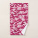 These girly camo bath towels feature a camouflage pattern in shades of dark pink and pale pink.