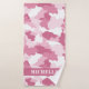 Decorate your bathroom in style with these personalized camouflage bath towels. This trendy pink camo pattern has shades of pink, dusty rose and raspberry. Customize with your monogrammed name in a pink stencil typography on raspberry. The perfect gift for family and friends that love camouflage. Designed by artist ©Susan Coffey.