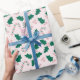 Pink Candy Canes and Holly Leaves Pattern Wrapping Paper