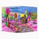 This is my Candyland design-a gingerbread house in a pink candy landscape with colorful lollipops, gummy bears, sugar canes, pralines and cotton candy by a chocolate road.