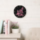 PINK CARNATION FLOWER BOUQUET,BLACK Floral Large Clock