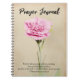 The front of this journal spiral notebook features my original photograph of a pink Carnation flower blooming with a soft background, processed in a vintage painterly style. Bible Scripture from 1 Thessalonians 5:16-18 is also on the journal.