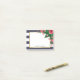 Personalized post-it notes with a gold frame, pink carnations, and navy blue stripes.