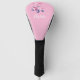 Personalize and add your monogram letters, initials. Pink background. Decorated with a pink golf cart with a girly bow. White script, hand lettered style script.