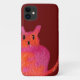 Cute pink and orange watercolor illustration of a cat. Cat art funky modern kitty design for cat lovers or crazy cat ladies.