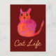 Cute pink and orange watercolor illustration of a cat. Cat art funky modern kitty design for cat lovers or crazy cat ladies.