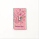 Handrawn pink cat cartoon playing the violin. Custom text.