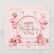 Custom birthday card presenting a festive pink celebration with "Happy Birthday To You!" with pink balloons and presents, personalized with your name and date, and light pink on both sides. Available in print and instant download to share right away.