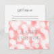 Gift Certificate card featuring the words "A Gift For You" in faux silver foil against a pink champagne bokeh lights pattern background on the front.