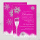 Pink Champagne Snowflake Christmas Holiday Party Invitation