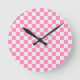 Pink Check, Checkerboard Pattern, Checkered Round Clock