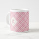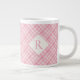 PINK CHECK QUILT Big White Mug + Initial