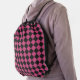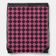Pink Black Checker Diamond Pattern Drawstring Backpack
