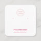Earring display card featuring a cute pastel pink checkered pattern. Template holes can be adjusted or deleted, as well as all your company information. Add your social media or website to the bottom.