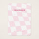 Earring display card featuring a cute pink checkered pattern. Template holes can be adjusted or deleted, as well as all your company information. Add your social media or website to the bottom.