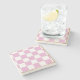 Complete your kitchen aesthetic with this set of two matching coasters, featuring a charming pink and white checkerboard pattern bordered in a soft gold trim. Perfect for adding a touch of elegance to your coffee table, desk, or breakfast nook, these coasters protect surfaces while keeping your style effortlessly coordinated.