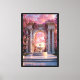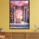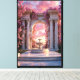 Bring timeless romance and serenity into your home with this breathtaking large canvas print. This stunning digital artwork features a majestic white marble archway adorned with cascading pink cherry blossoms in full bloom. At the center, an elegant multi-tiered fountain flows gently, framed by the warm glow of a pink and golden sunset sky. Scattered petals on the marble steps add a dreamy, poetic touch.