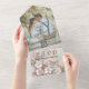Introducing our Pink Cherry Blossom (Sakura) vintage style floral all-in-one invitation which allows you to feature a treasured picture of your choice as the background for the majority of the inside of the invitation. This invitation is a floral cherry blossom theme with a mauve grey background and dark brown, almost black text. This all-in-one invitatation is perfect for couples seeking a timeless romantic, vintage and classic aesthetic for their special day. The highlight of this invitation is the convenient QR code, allowing guests to RSVP effortlessly using their smartphones. For traditionalists, we've included a traditional paper RSVP option as well. With the all-in-one design, guests can easily tear away the RSVP section and send it back. Additionally, we've provided email information for RSVPs, ensuring a seamless and convenient RSVP process. There is a transparent, overlay positioned over the photograph so that it will match the aesthetic of the invitation. This template was created using a photo with a landscape orientation, and the customer, in all likelihood, will have an easier time with successful picture placement using a photo with a landscape orientation.