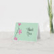 These customizable thank you cards are mint green with an illustration of pink cherry blossom flowers, with additional cherry blossom accents inside and on the back. The "Thank You" message on the front of the card can be customized with your own text. The cards are blank on the inside so that you can write your own message.