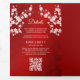 This traditional bilingual Chinese wedding invitation features pretty pink cherry blossoms and a round gold double happiness symbol on a ruby red shimmering background. Bride and groom names in an elegant classic script. Chinese wedding invitation or tea ceremony invitation. With your photo in the center of the tri-fold wedding invitation and a traditional Chinese text at the right inner side. At the backside are the details and a scannable qr code for your wedding website.