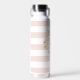 This elegant and modern water bottle features a monogram with a cherry blossom wreath on a white background with pink stripes. Personalize it for your needs. You can find matching products at my store.