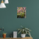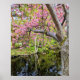 Dress up a wall with this poster print that features a photographic image of a pink cherry blossom tree in bloom alongside a pond. Customize your poster size as desired along with other options.
