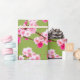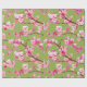 Pink Cherry Blossoms Florals on Chartreuse Green Wrapping Paper