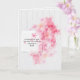Pink cherry blossom abstract design with white frame and quote on whitewashed wood background for sympathy.