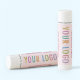 Personalize our cherry flavored lip balm, complete with safety seal, with your own logo and custom text. Made with natural beeswax, it's paraben free and petrochemical free. Custom branded lip balms can advertise your business as swag and party favors. Available in cherry and other flavor options. Sold with a light pink label and other colors (all colors are customizable). Low minimum order quantity (sold in sets of 12) and no setup fee.