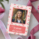 Celebrate your graduate with this personalized graduation card featuring a cute fun pink cherry pattern background and a custom photo placeholder. Perfect for high school, college, or any graduation celebration, this cute and trendy design adds a sweet touch to your congrats message. Easily customize with your own text and image.