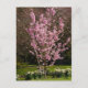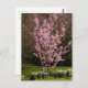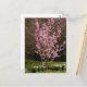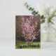 Postcard with photo of daffodils and columnar cherry tree with pink blossom