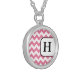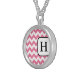 Stylish custom necklace with a pink & white chevron zigzag pattern, and personalized with your initial. Choose your size, style, and metal or finish.