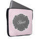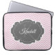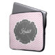 Protect your laptop with a Pink Chevron Personalized Laptop Sleeve. Laptop sleeve design features a pink chevron background and ornate gray tag to personalize with your name and monogram. Additional items available with this design as well. Please contact me directly for assistance with personalization.
