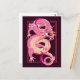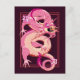 Graphic design illustration of a pink eastern dragon on Postcard for fan of dragons and China mythology lovers.