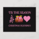 Stylish Pink CHRISTMAS BLESSINGS postcard for men and women of all ages. The design shows a heart, Christmas pudding and modern Christmas tree graphic in popular trending pink color. At the top the wording reads 'TIS THE SEASON and underneath reads CHRISTMAS BLESSINGS. On the reverse there is a Christmas greeting. All text is CUSTOMIZABLE so you can personalize this pink Christmas postcard by adding your name and special greeting. Matching gifts available.