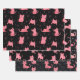 Pink Christmas Cats on Black Wrapping Paper Sheets