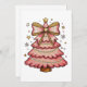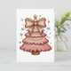 Pink Christmas Lights Tree Coquette Bow Watercolor Holiday Card