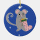Pink Christmas Mouse Ceramic Ornament