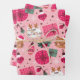 A playful pattern featuring cute animals and festive decorations on a pink background.