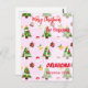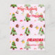 Christmas card with doorbells, Santa Claus, Candy House, and a big Christmas tree on a beautiful pink fond. Love pink, love to love and be loved. Personalize this card by adding your own family name, location, and photos.