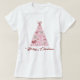 Cute minimalist t-shirt featuring a pink Christmas tree with festive bows. Perfect for holiday outfits, cozy vibes, and Christmas gifting.