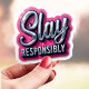 Serve glam vibes with this Pink Slay Responsibly Aesthetic sticker featuring metallic script and bold pink background. Perfect for laptops, phone cases, water bottles, or journals. Printed on premium glossy vinyl with vibrant colors that last. A fun and cheeky gift for baddies, besties, and anyone who loves a little sparkle with their hustle. Slay away... but do it responsibly.