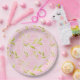 Pink circles Spring paper plates. Design can be transferred to matching paper napkins.