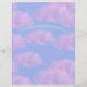 Features fluffy, pink, soft clouds with a rainbow and small stars.