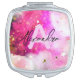 Pink Clouds Gold Galaxy Star Dust Monogram Name Compact Mirror