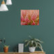 This artistic poster features an impressionistic abstract view of the center of a pink clover blossom.