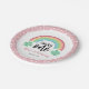 Lucky one birthday party paper plates with a pink four leaf clover patterned trim and a sparkling rainbow in pretty colors. St Patrick's Day themed first birthday party paper plates in pink with a pretty rainbow and four leaf clovers. Pink lucky one birthday party paper plates with four leaf clovers and your daughter's name in pink